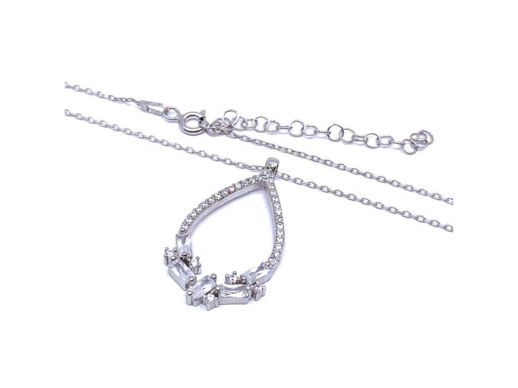 Elegantní řetízek s přívěskem ze stříbra (925/1000). Přívěsek má tvar kapky, která je zdobená malými bílými zirkony různých tvarů. Řetízek je typu anker s nastavitelnou délkou. Stříbro je povrchově upraveno rhodiováním proti oxidaci. Všechno naše zboží je označeno puncovními značkami uznanými Puncovním úřadem ČR.Doplňkové parametry