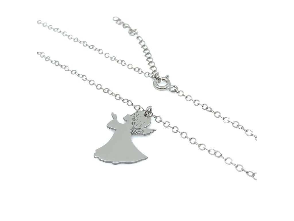 Dámský řetízek s přívěskem ze stříbra (925/1000). Přívěsek má tvar hladkého anděla. Řetízek je vzoru anker s nastavitelnou délkou. Šperk je chráněn povrchovou úpravou rhodiováním, které jej chrání před oxidací. Všechno naše zboží je označeno puncovními značkami uznanými Puncovním úřadem ČR.Doplňkové parametry
