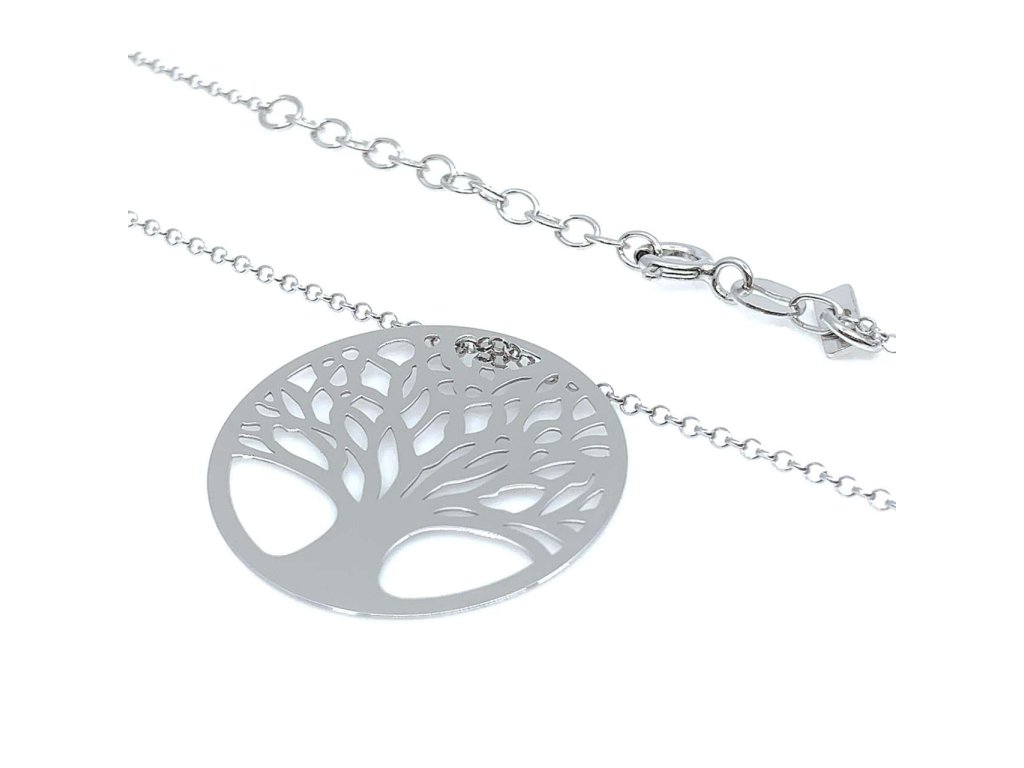 Dámský řetízek s přívěskem ze stříbra (925/1000). Přívěsek má tvar hladkého stromu života. Řetízek je vzoru anker s nastavitelnou délkou. Šperk je chráněn povrchovou úpravou rhodiováním, které jej chrání před oxidací. Všechno naše zboží je označeno puncovními značkami uznanými Puncovním úřadem ČR.Doplňkové parametry