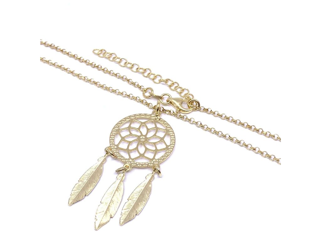 Nápaditý řetízek s přívěskem ze zlaceného stříbra (925/1000), který je tvaru lapače snů s nastavitelným řetízkem typu rolo. Šperk je pozlacený do žluté barvy. Všechno naše zboží je označeno puncovními značkami uznanými Puncovním úřadem ČR.Doplňkové parametry