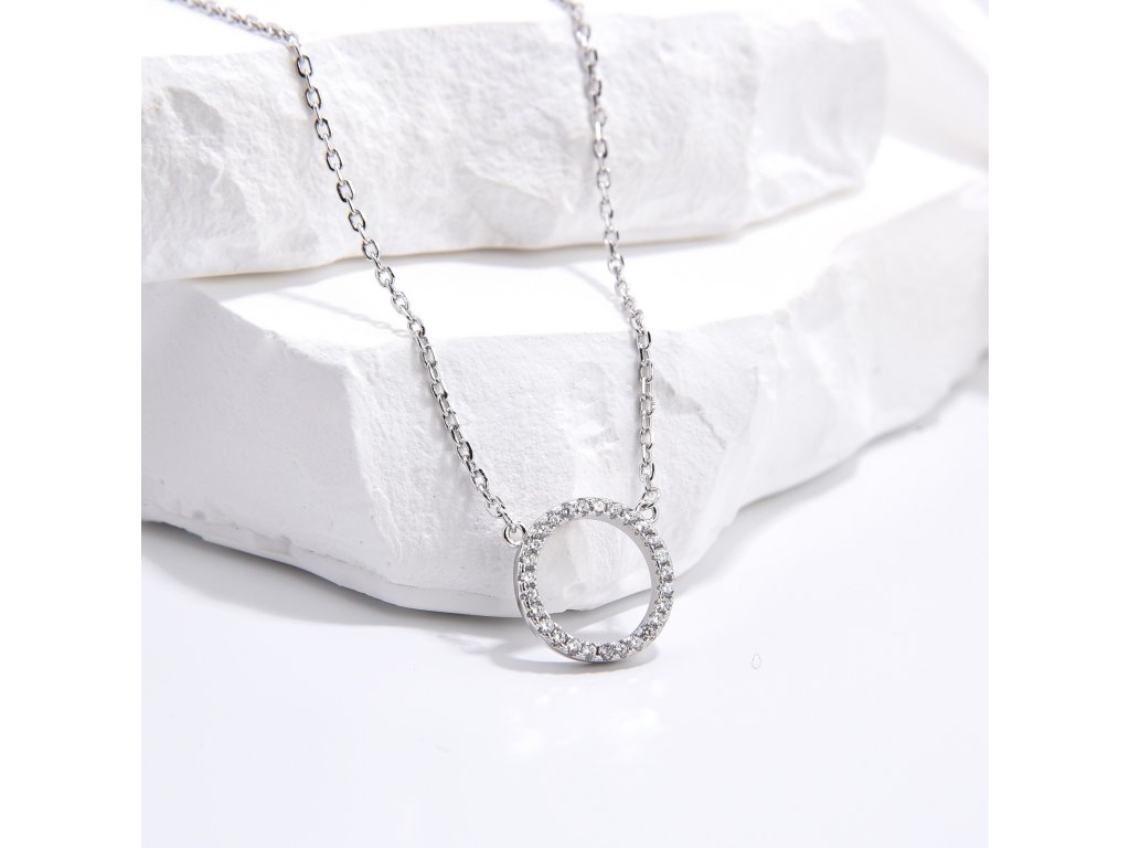 Hezký řetízek s přívěskem ze stříbra (925/1000). Přívěsek má kulatý tvar, který je po obvodu osázen malými bílými zirkony .Řetízek je typu anker a má nastavitelnou délku. Šperk je chráněn povrchovou úpravou rhodiováním, které jej chrání před oxidací. Všechno naše zboží je označeno puncovními značkami uznanými Puncovním úřadem ČR.Doplňkové parametry