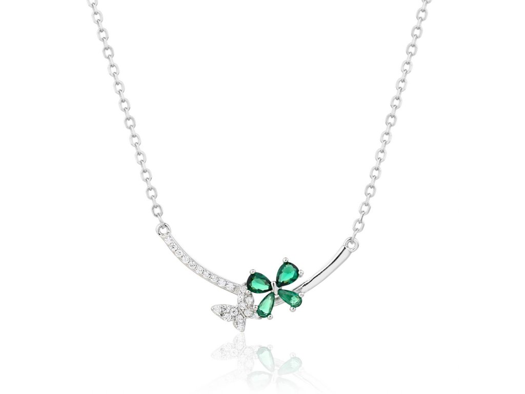 Jan Kos jewellery Stříbrný řetízek s přívěskem se zeleným ka