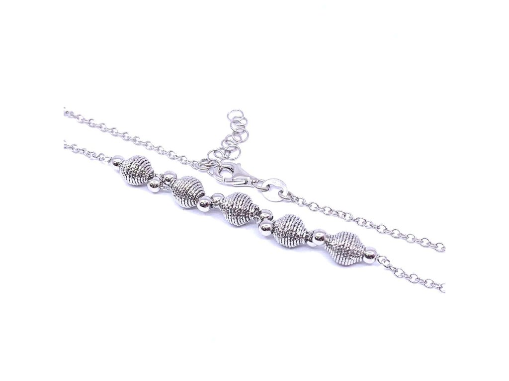 Úchvatný řetízek s přívěsky ze stříbra (925/1000) Vás jistě potěší. Řetízek má krásné ozdoby ve tvaru pěti kuliček zdobených broušením a doplněné několika hladkými. Šperk je chráněn povrchovou úpravou rhodiováním, které jej chrání před oxidací. Všechno naše zboží je označeno puncovními značkami uznanými Puncovním úřadem ČR.Doplňkové parametry