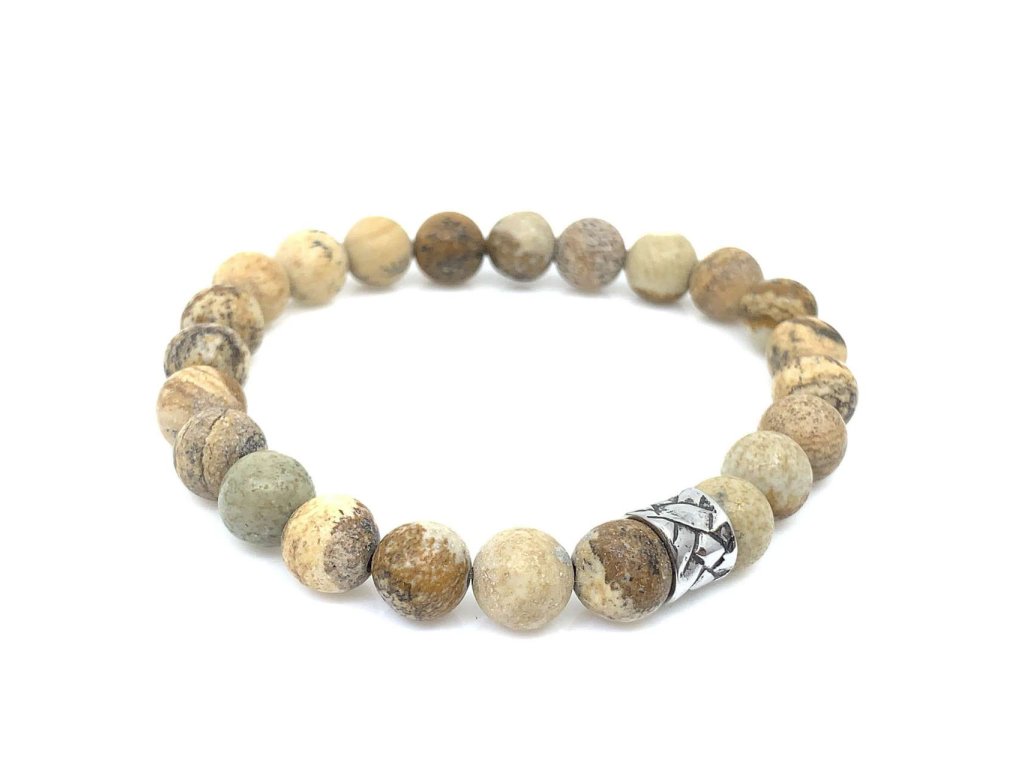Dámský i pánský náramek je z minerálních kamenů. Ozdoba je ve tvaru oválu z oceli ( 316L ). Vše je navlečeno na gumičce. To umožňuje flexibilitu délky.Doplňkové parametry